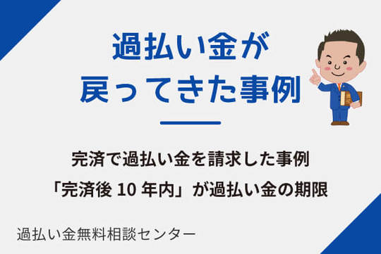 事例から、完済後の過払い金の内容をご覧下さい。